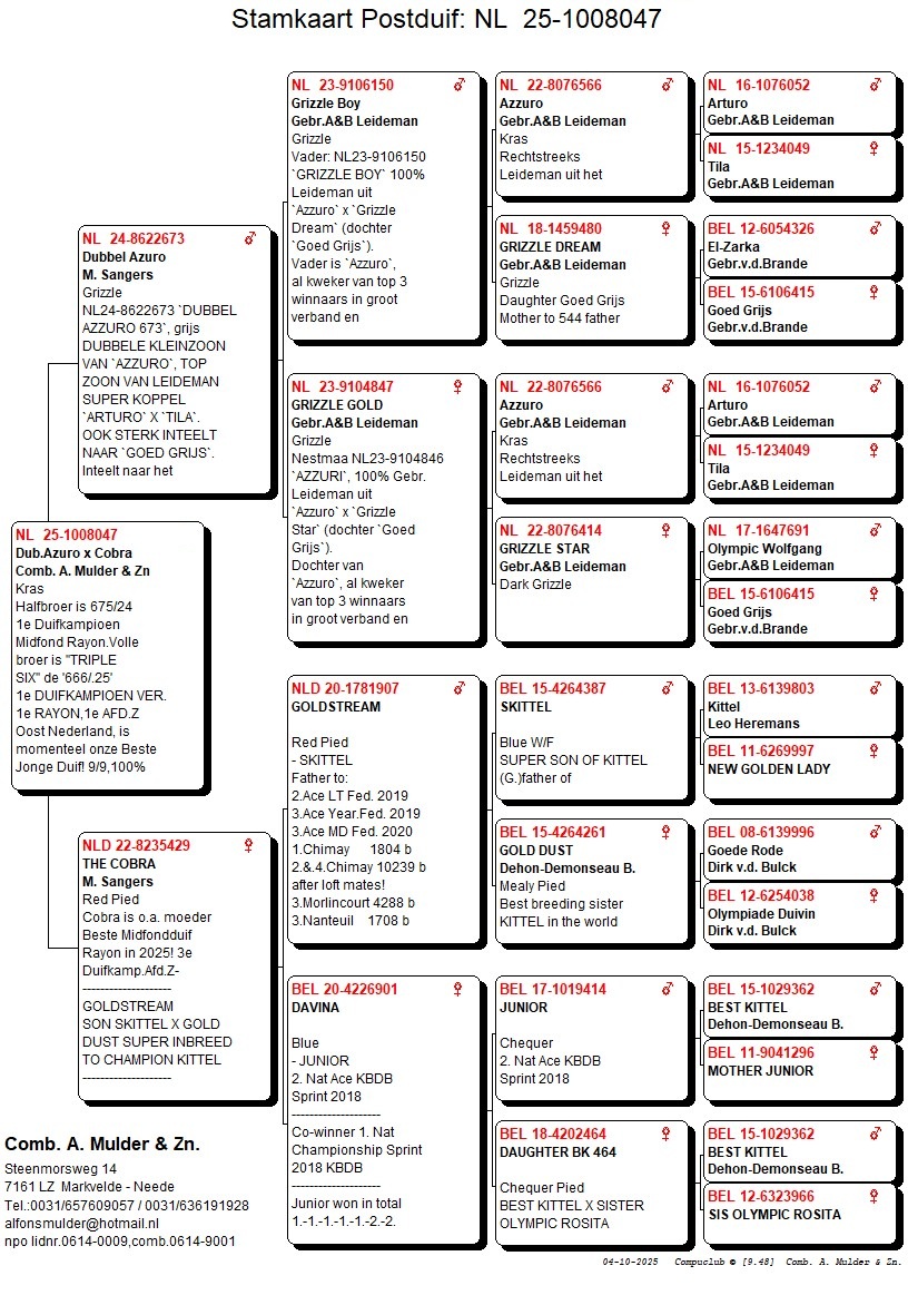 Nl25-1008047 Kras, waarsch. duivin. Zus v. onze beste jonge