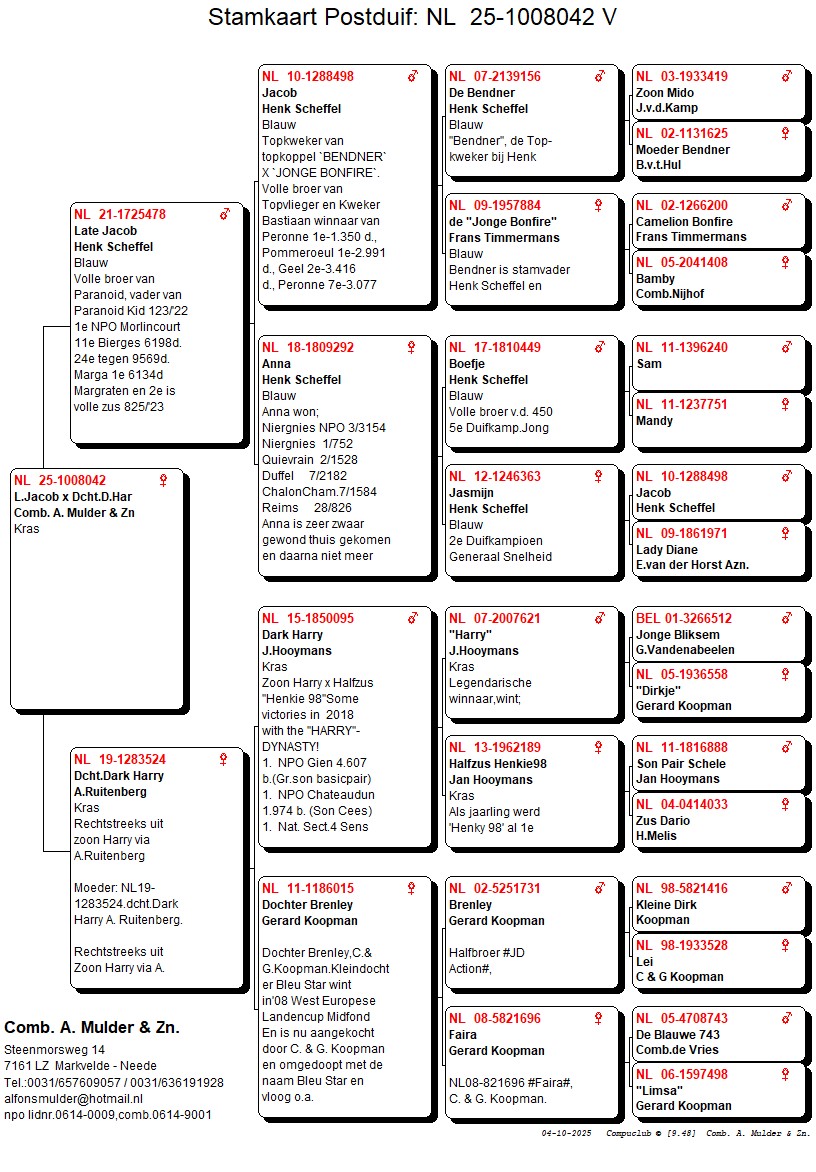 Nl25-1008042 Kras, duivin, komt uit directe zoon