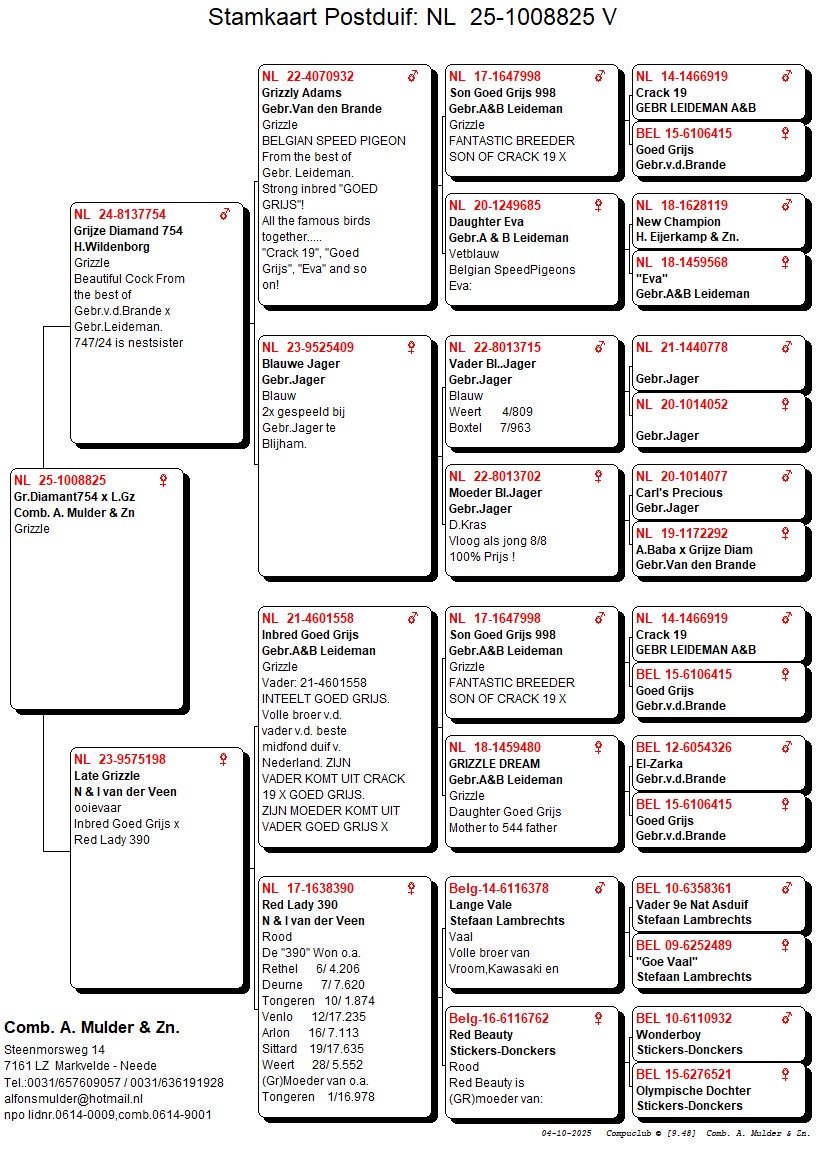 Grizzle, duivin. Deze grijze kleurslag is momenteel erg populair,