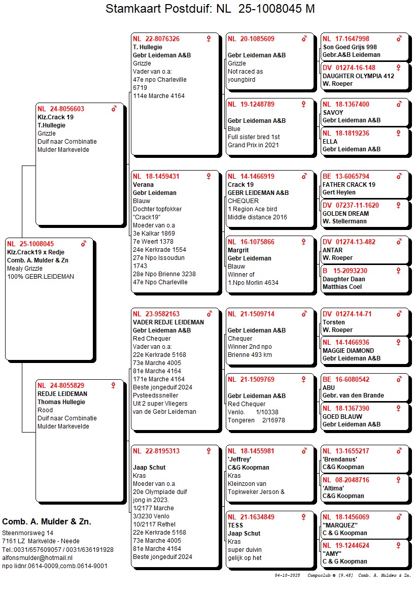 LEIDEMAN EN DUIFKAMPIOEN MET 10/10PR.,