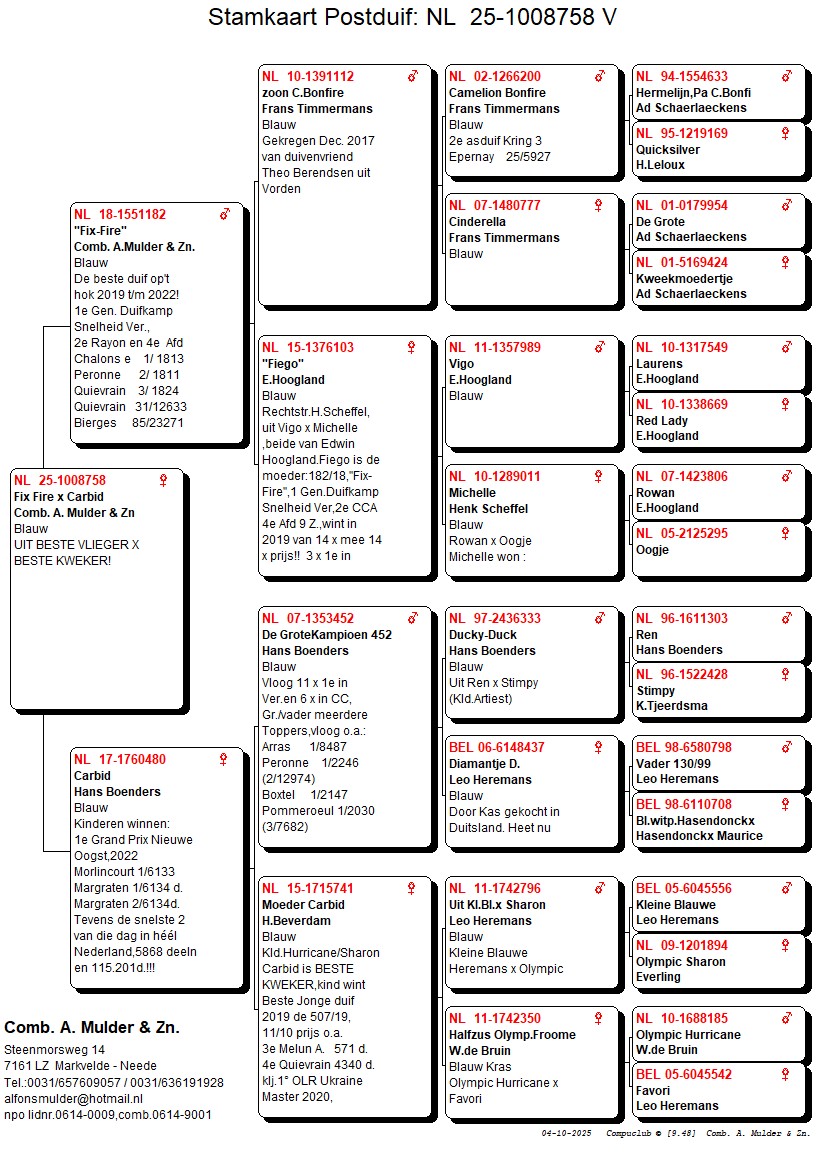 BESTE KWEEKDUIVIN, de FIX FIRE x CARBID, bewezen goede duiven samen gezet