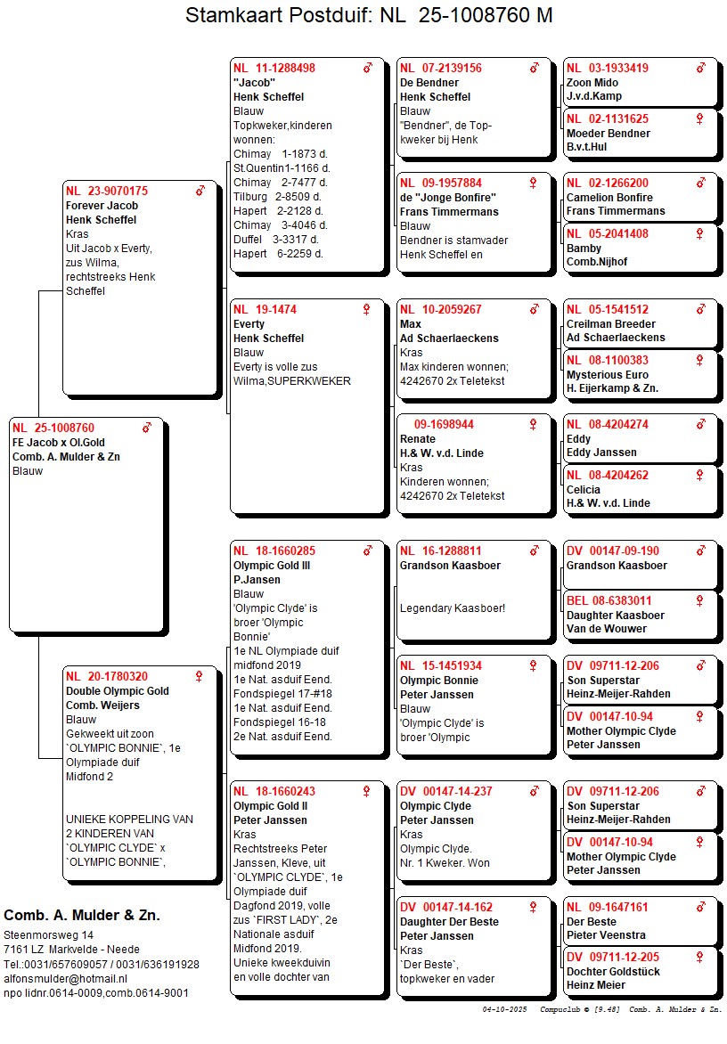 Scheffel met duivin uit Wonderkoppel Max x Renate, v.d. Linde. Gekoppeld