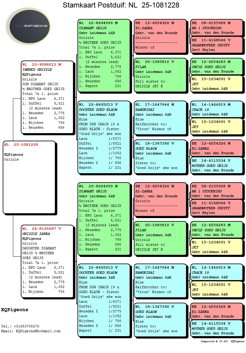 UIT `INBRED GRIZZLE` ZOON `DIAMANT GRIJS` ZOON EL-ZARKA` half BROER GOED GRIJS X `GRIZZLE ZARKA`