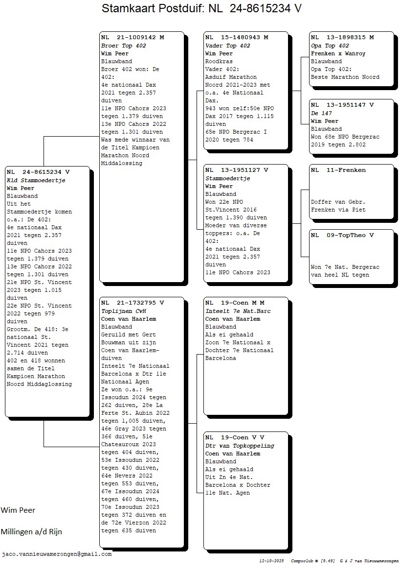 NL24-8615234 Duivin, KLEINDOCHTER STAMMOEDERTJE.