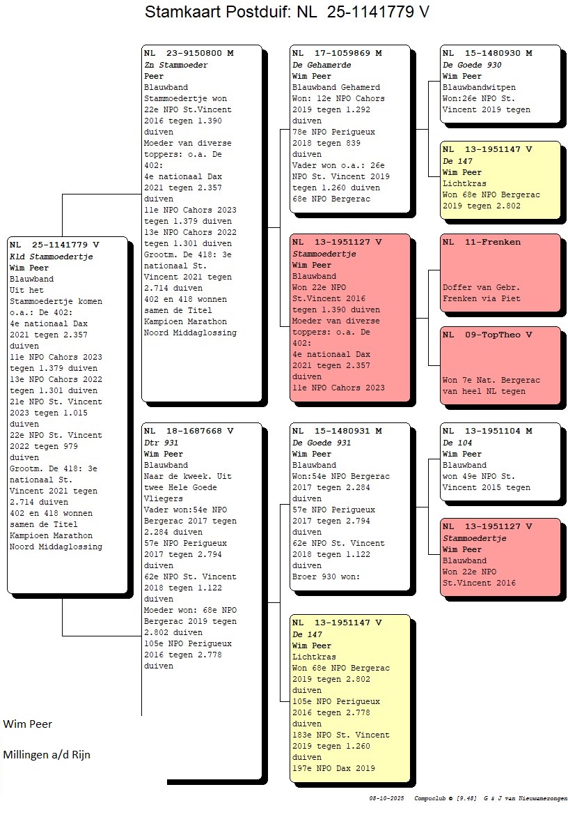 NL25-1141779 Duivin, KLEINDOCHTER STAMMOEDERTJE.