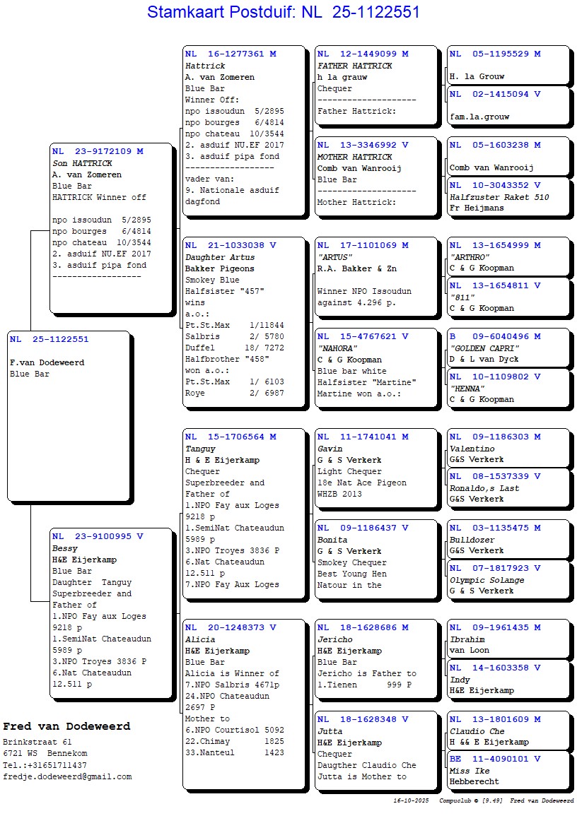 UIT ZOON HATTRICK (HATTRICK 3X TOP 10 NPO) X DO. TANGUY, (VADER v. o.a. 1e NAT. DUIFKAMP. EENDAAGSEFOND `FONDSPIEGEL` 2018-2019.