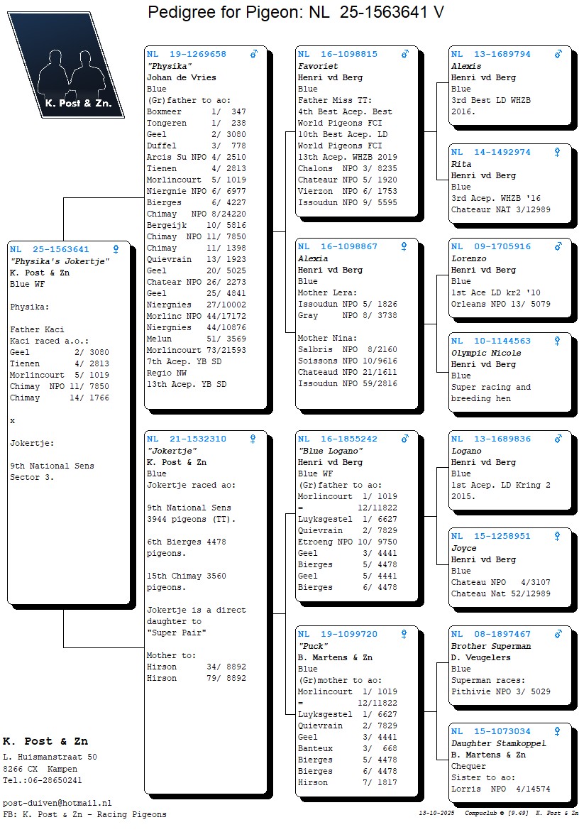 NL25-1563641 Blauw Witpen duivin. PHYSIKA`S JOKERTJE.