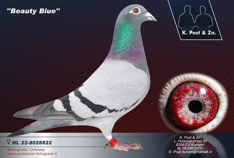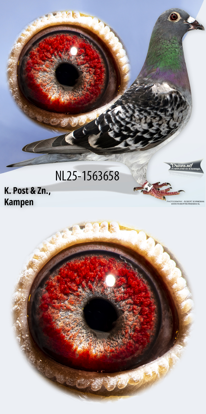 NL25-1563658 Donkerkras duivin. `NEW REBELLION` met een stralend oog en een