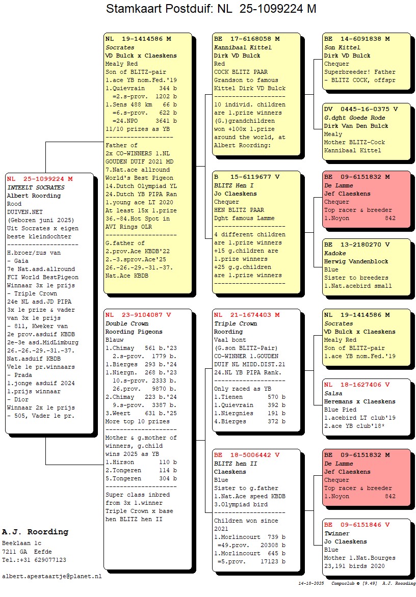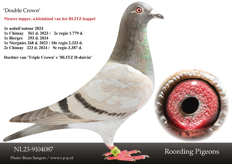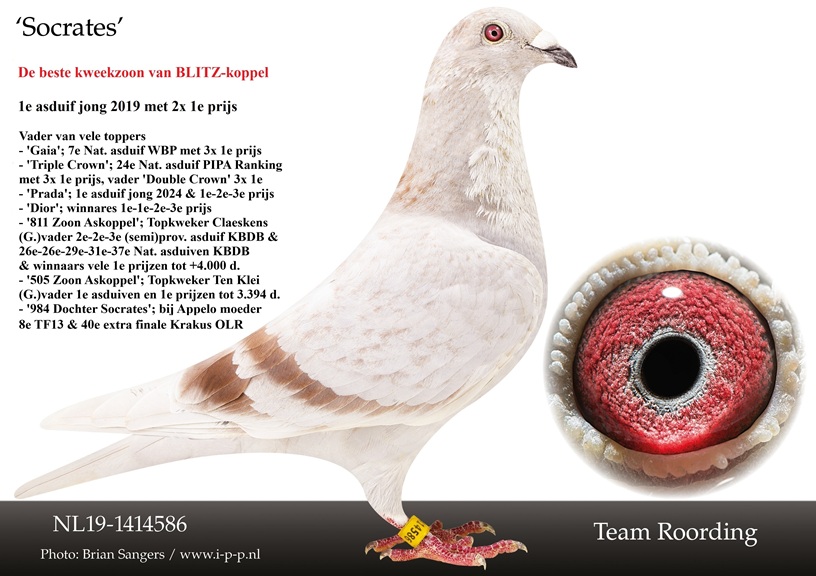 – UIT SUPERKWEKER `SOCRATES` (BESTE ZOON BLITZ-PAAR) X ZIJN KLEINDOCHTER `DOUBLE CROWN`.