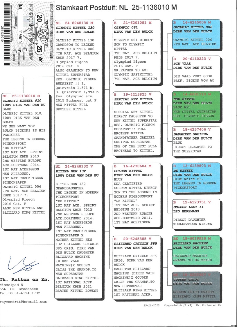 KITTEL` GR.OUDERS `BLIZZARD KING KITTEL` EN `NEW KITTEL` IN DE PEDIGREE