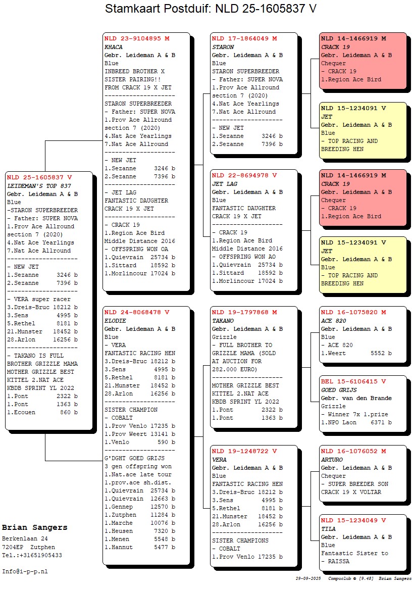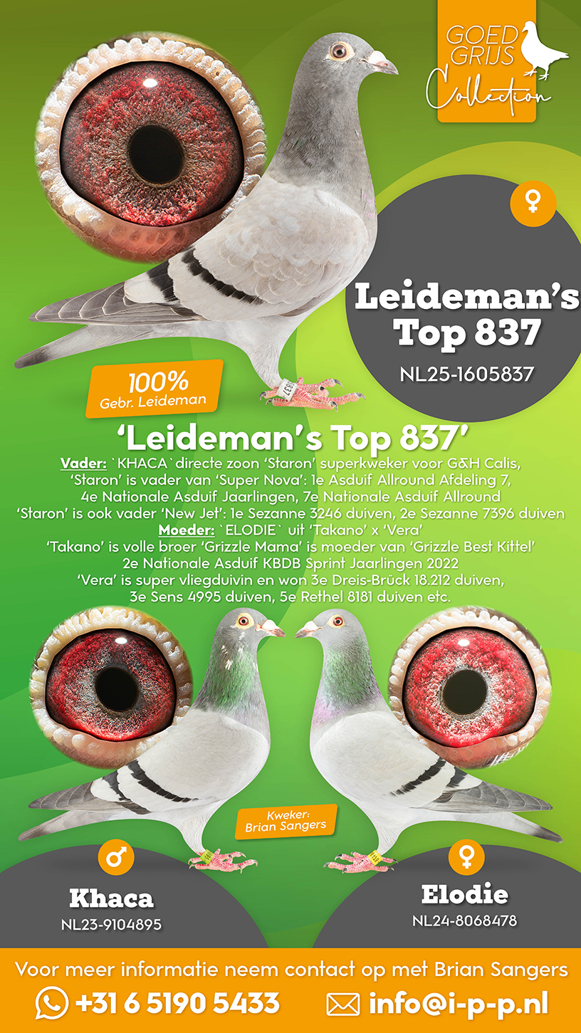 NL25-1605837 `LEIDEMAN`S TOP 837`, blauw (waarsch. duivin) –