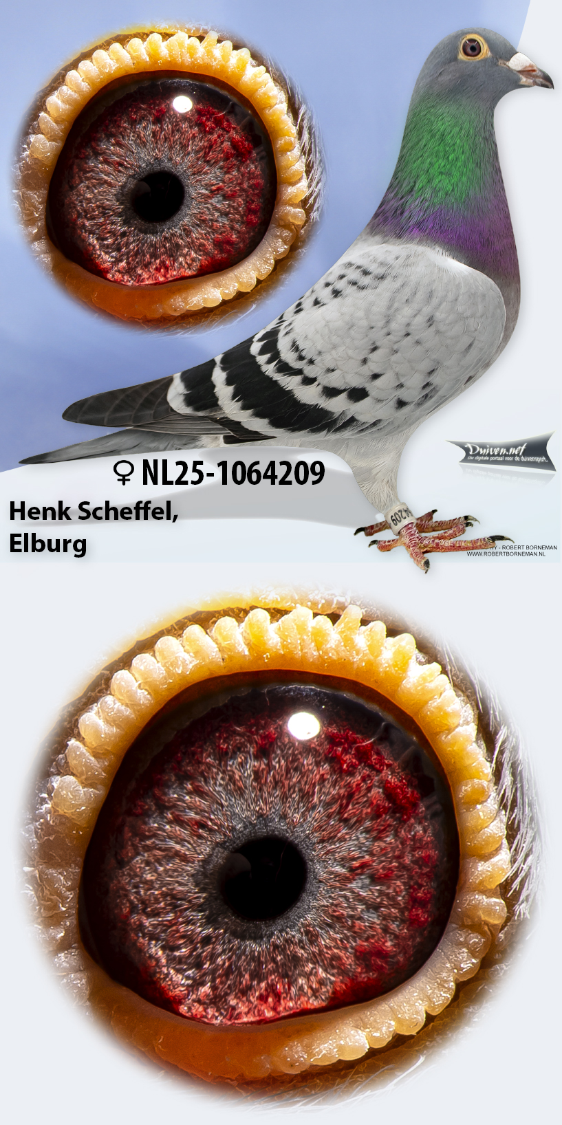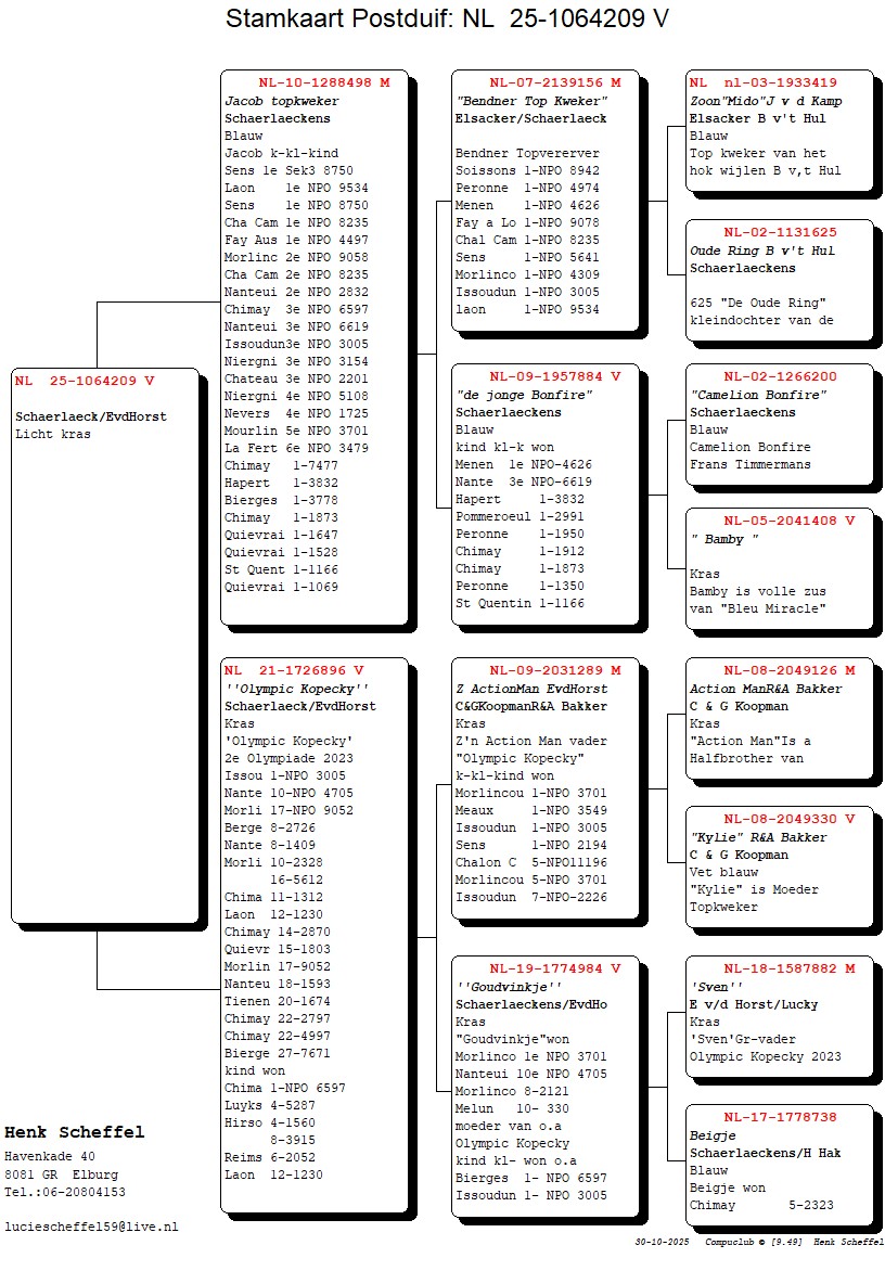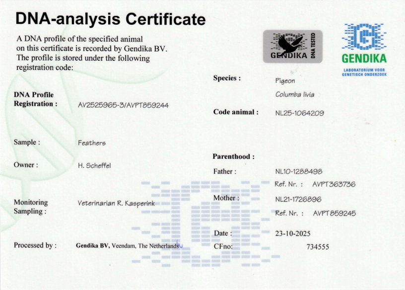 Koop 1 NL25-1064209 !!!EEN SUPER AANBIEDING!!! Kras duivin UIT TOPKOPPEL `JACOB` X `OLYMPIC KOPECKY` zn. Bendner x Jonge Bonfire` x do. Zn. Action Man x Goudvinkje. DE 209 HALFZUS v. ‘LUCIE` NL 24-150 4e Best Pigeon Jaarling PIPA Ranking.