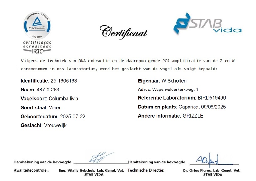 Schimmel Duivin, 100% H. & E.J. Eijerkamp.