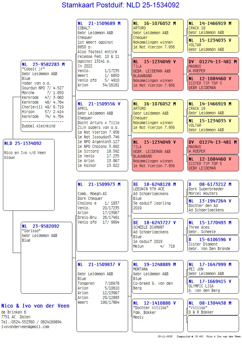 Vader is COBALT JR. EEN RECHTSTREEKSE ZOON VAN COBALT X APRIL. GEBR LEIDEMAN.