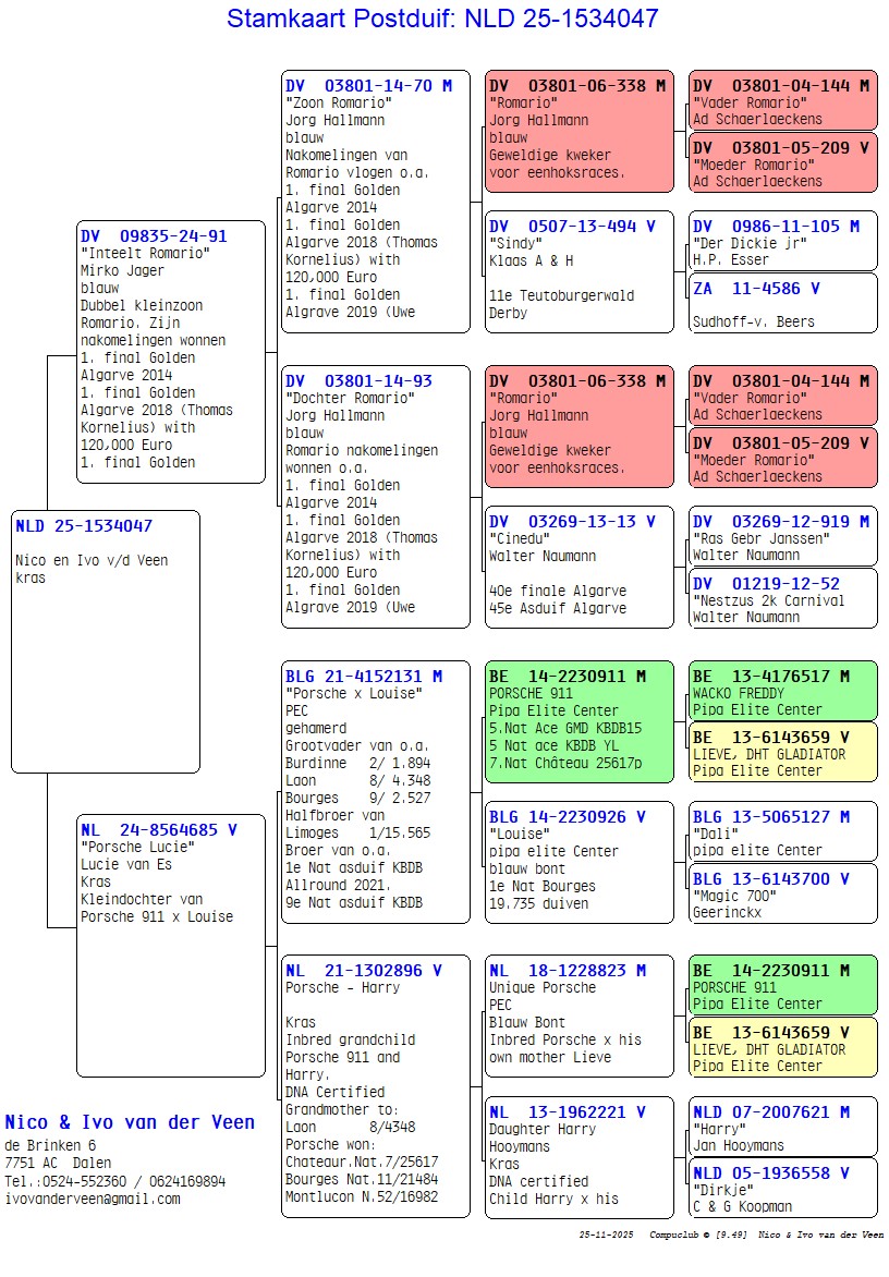 Zijn vader is een dubbel KLEINKIND VAN ROMARIO VAN JORG HALLMANN. EEN SUPER KWEKER VOOR DE ONE LOFT RACES