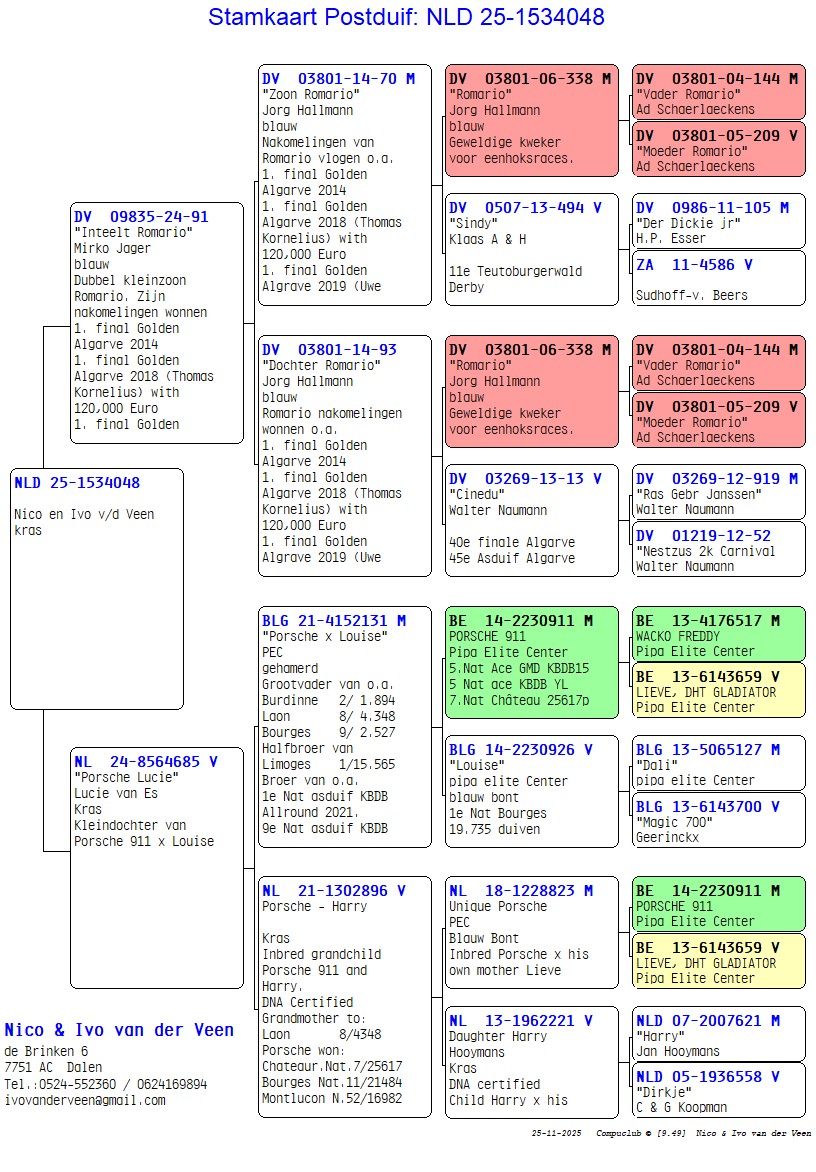 Haar vader is een dubbel KLEINKIND VAN ROMARIO VAN JORG HALLMANN. EEN SUPER KWEKER VOOR DE ONE LOFT RACES