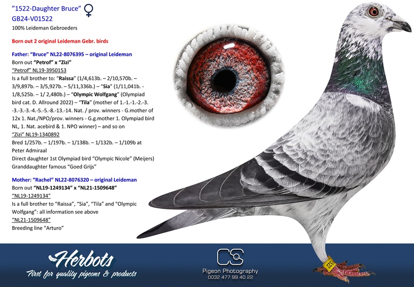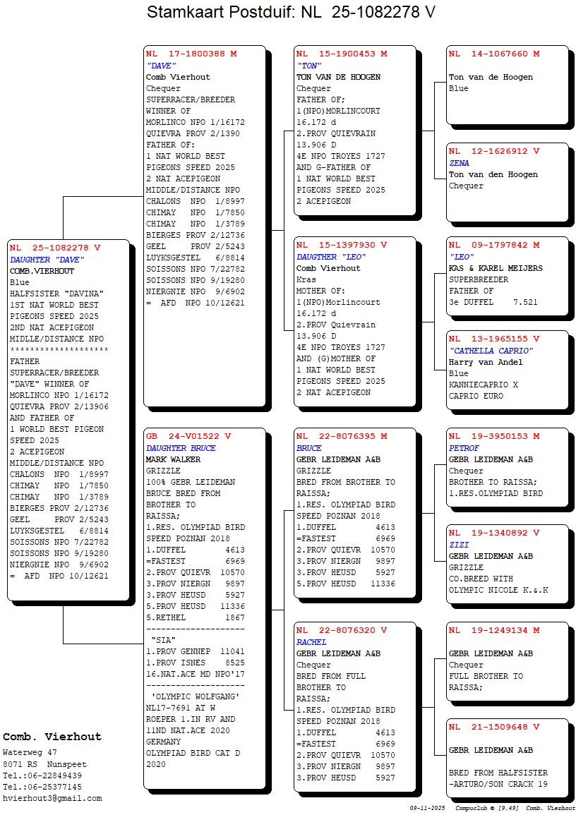UIT TOPKWEKER `DAVE` DEZE DUIVIN 278 IS HALFZUS `DAVINA`22-229