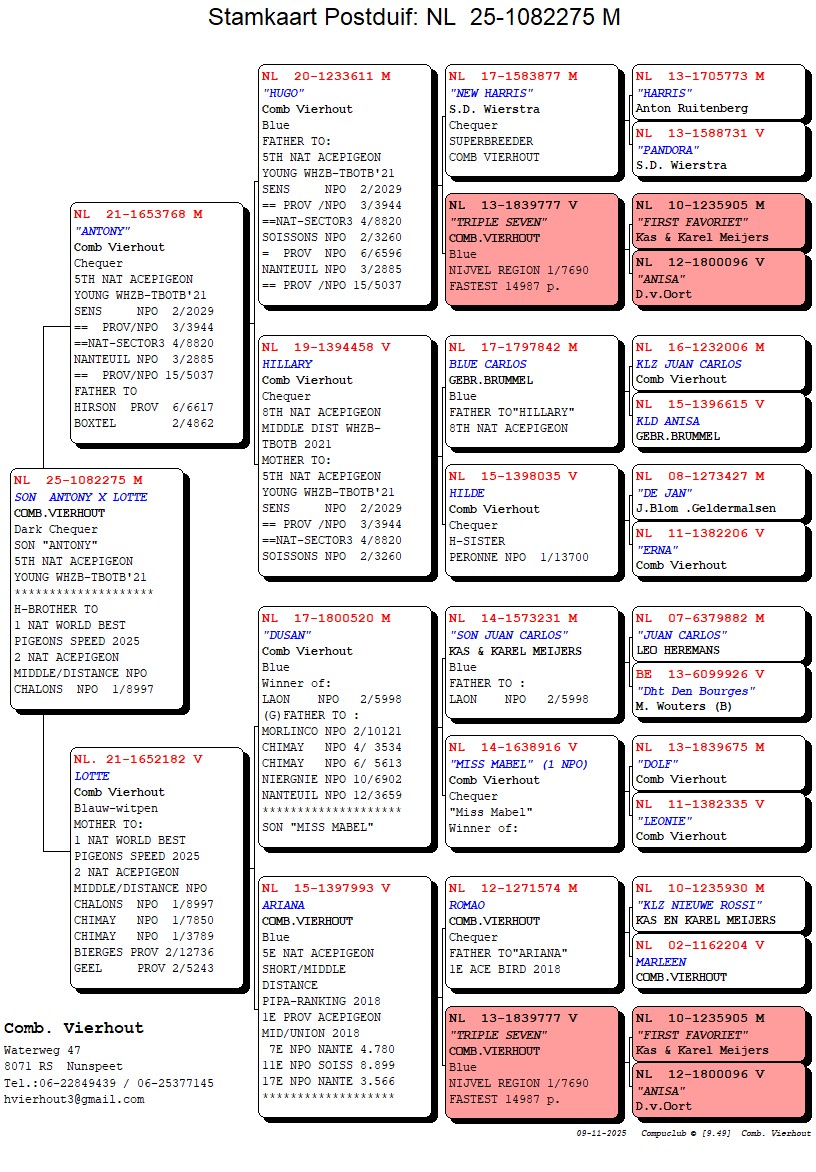 (J.A. HERSSENBERG) 1E WORLD BEST PIGEON SPEED.