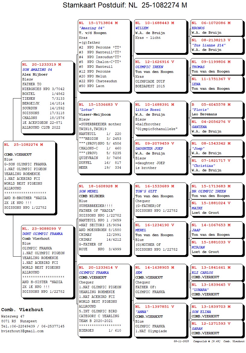 KLZ OLYMPIC FRANKA UIT AMAZING 319 COMB NIJBOER VADER VAN 3E NPO NIERGNIES 7042 D X DOCHTER OLYMPIC FRANKA.
