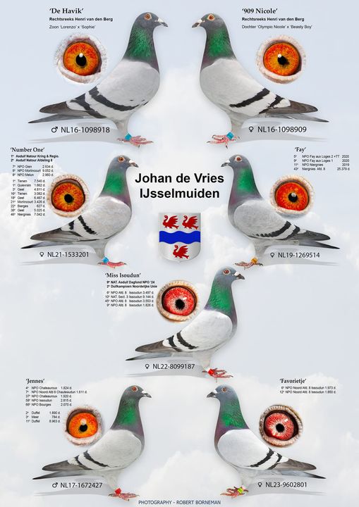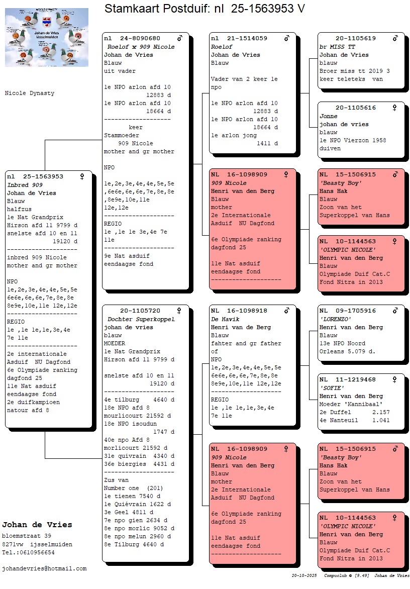 De vader komt uit ROELOF VADER VAN 2 X 1e NPO KEER STAMDUIVIN 909 NICOLE.