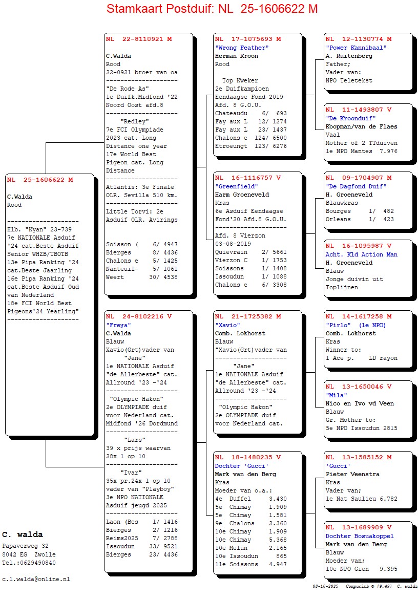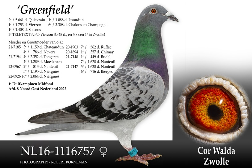 UIT `GOEDE BROER` (o.a. 6e Soissons, 8e Bierges v. duizenden duiven) X `FREYA`(17e FCI World Best Pigeon