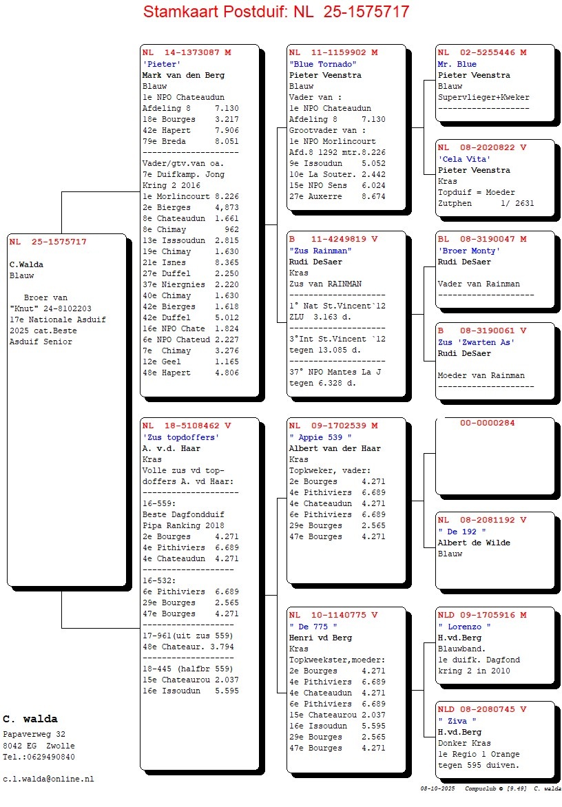 haar broers waren de Beste Dagfond duiven v. Nederland in `20 deze zijn verkocht op PIPA.