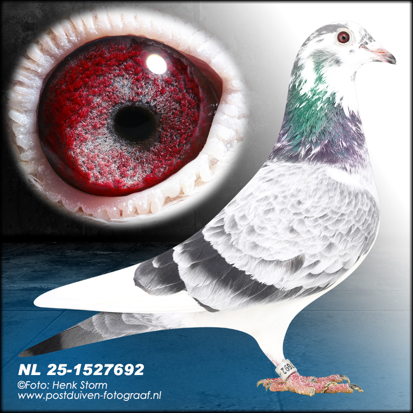 NL25-1527692 Grijze is een mooie slanke duivin. Zus koop 13, HUNTI X WHITE SENSATION LIJN.