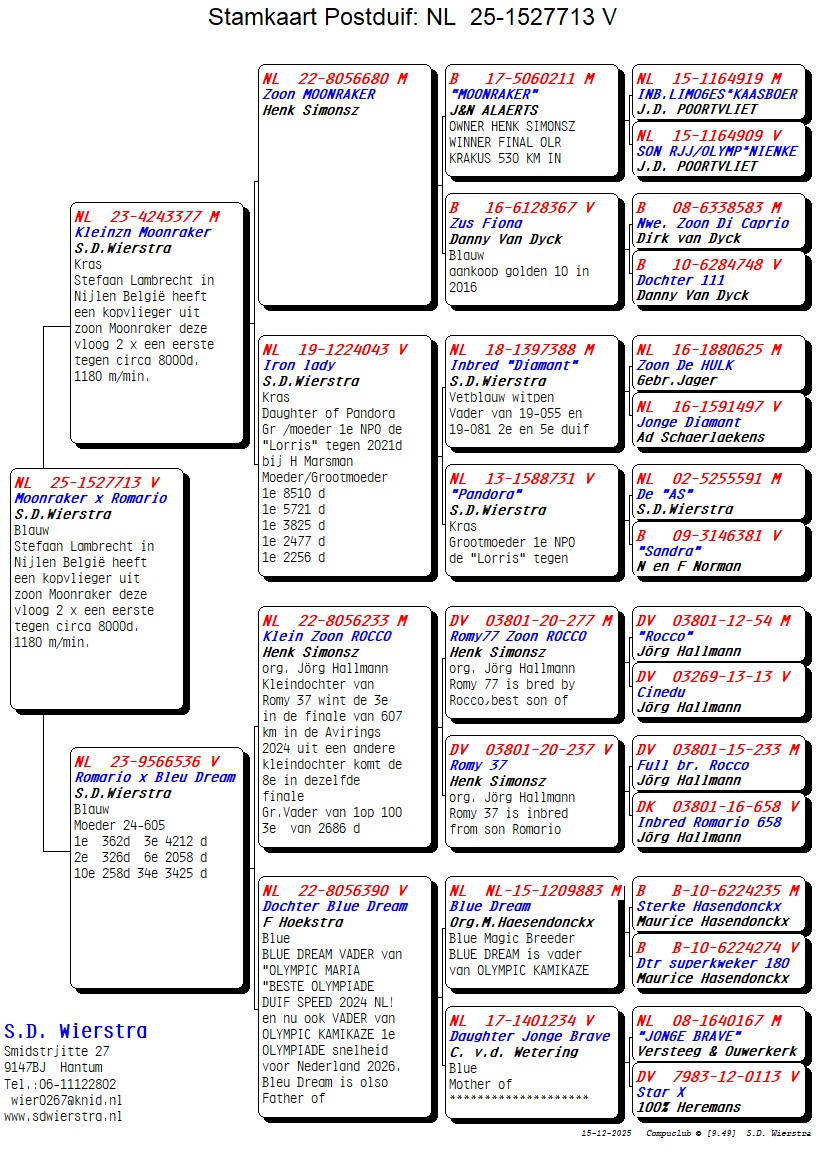 NL25-1527713 Super gladde duivin de koper moet hier wel mee slagen. MOONRAKER, ROMARIO EN BLEU DREAM TOPLIJN.