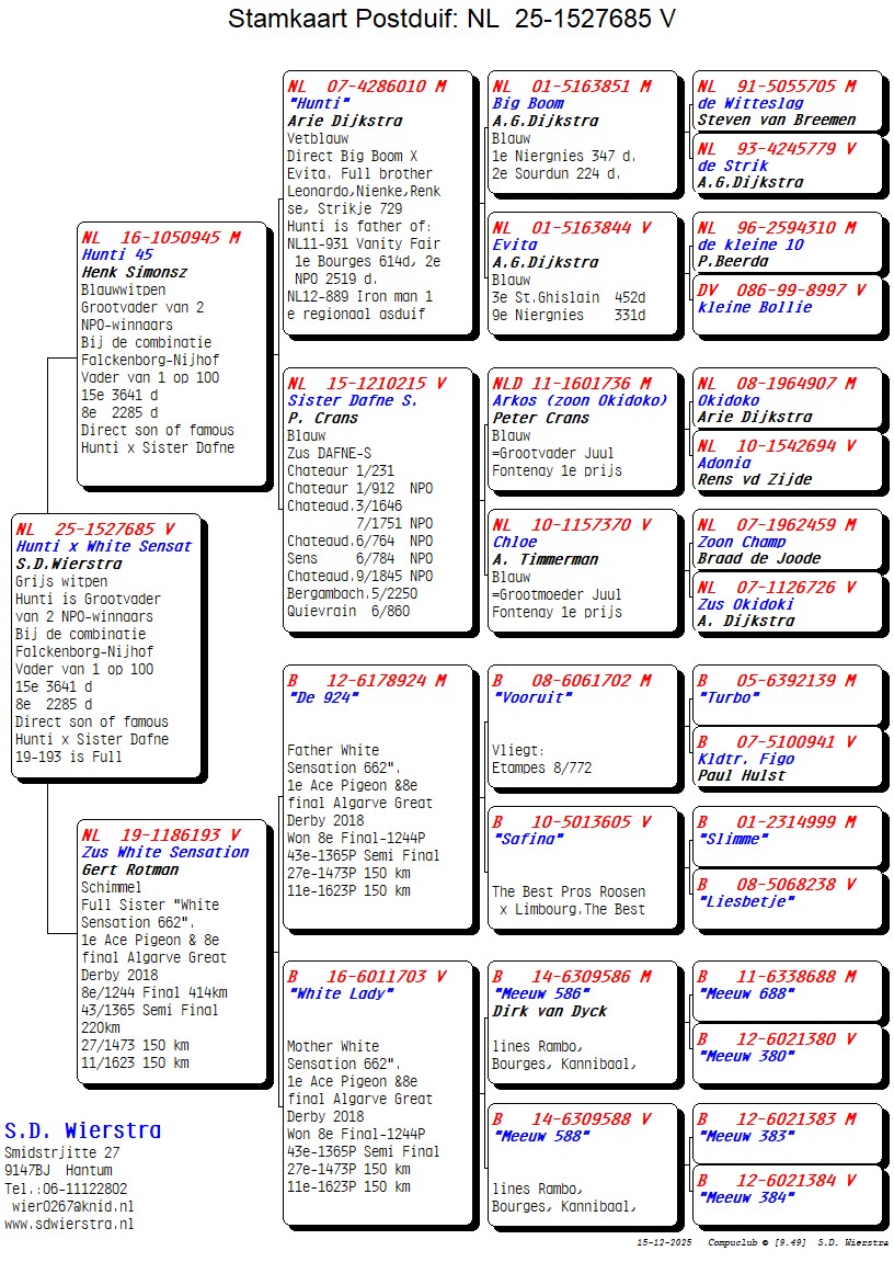 NL25-1527685 Grijze Duivin stevig duivinnetje. zus koop 6, HUNTI X WHITE SENSATION LIJN.