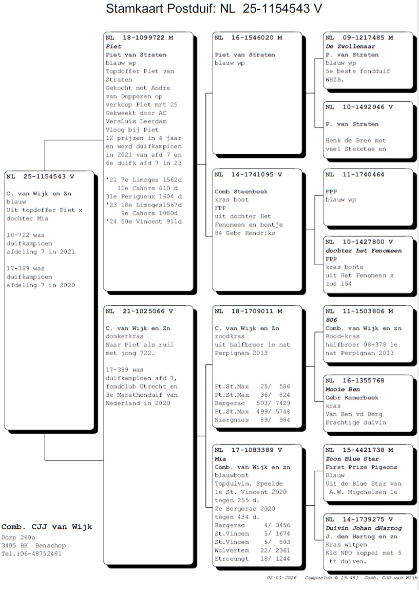 UIT TOPDOFFER WIJLEN PIET VAN STRATEN x DOCHTER MIA (17-389), DUIFKAMP Afd. 7, FONDCLUB UTRECHT